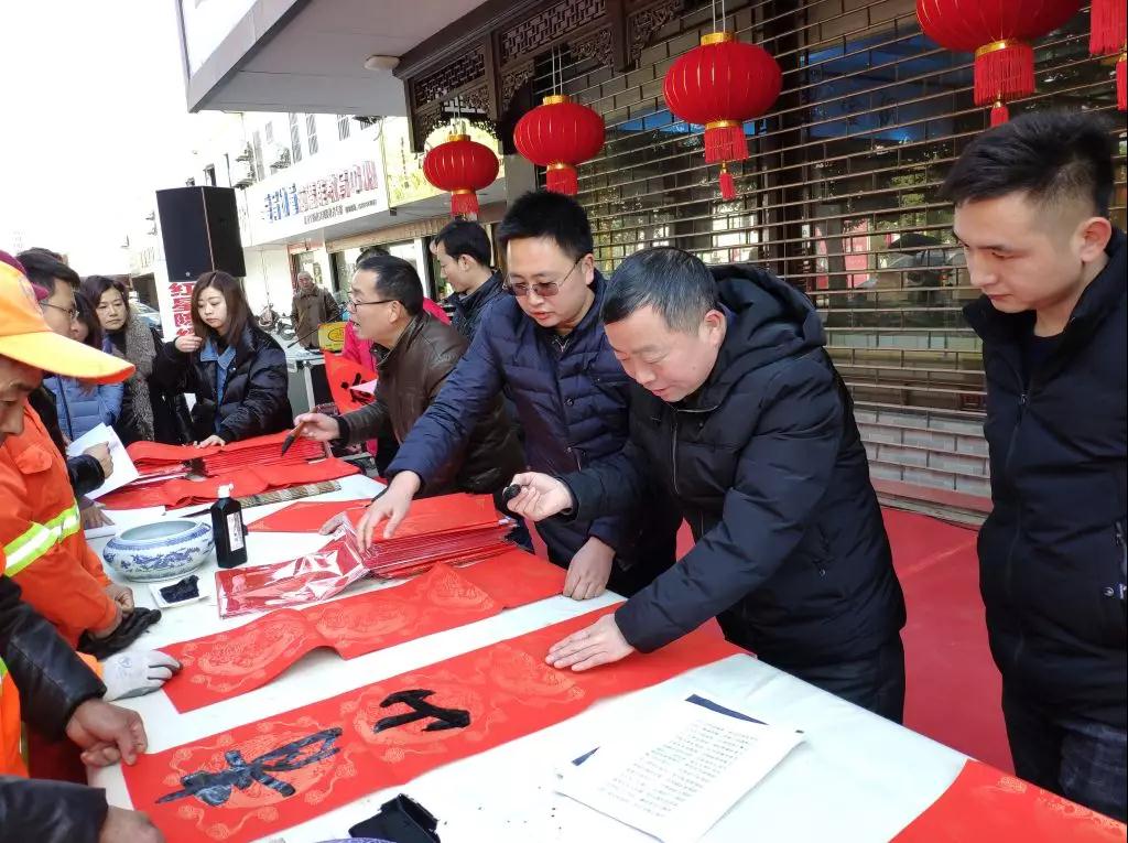 ??展廳內(nèi),一幅幅作品琳瑯滿目,前來(lái)參觀的市民絡(luò)繹不絕。參展書(shū)畫(huà)家不斷揮毫,為環(huán)衛(wèi)工人及市民寫(xiě)下一張張新春祝福,得到了熱烈歡迎和好評(píng)。