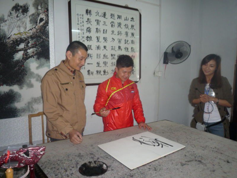 5月31日,奧運冠軍陳一冰在相關(guān)領(lǐng)導(dǎo)的陪同下參觀中國宣紙文化園,參觀結(jié)束后與工作人員合影并簽名留念。