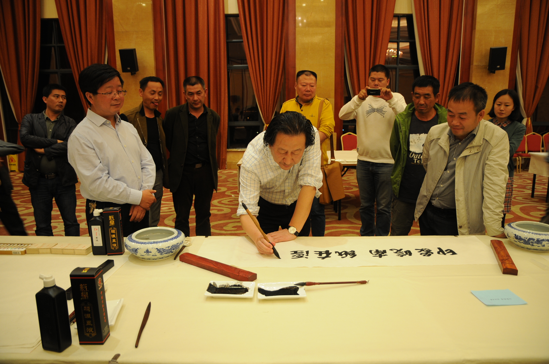 開幕式上,楊曉陽先生做重要講話。他說,“首先請允許我代表中國國家畫院李可染先生以后的全體人員,向涇縣、向宣紙,致以崇高的敬意!工作室一行來到?jīng)芸h,是朝圣,涇縣在中國歷史上無可取代。10月15號習(xí)主席專門召開了文藝座談會,會上習(xí)主席講‘中國畫在世界上獨樹一幟,中國的寫意精神已經(jīng)成為一種世界時尚’,如果沒有宣紙,沒有涇縣,國家領(lǐng)袖如何能發(fā)出這樣的感慨,如何能最高度的評價中國畫和中國的寫意精神。這次,我們帶著小小的畫展,以互相交流和上課的形式來到?jīng)芸h,受到公司負(fù)責(zé)人和縣政府及各位朋友的大力支持。涇縣從明代以后,由于有了宣紙而名揚天下,自從有了宣紙,涇縣這個名字、宣紙這個名字,在中國的詞典里占有不可取代的一頁?!睏钕壬F(xiàn)場授課,向大家介紹了中國國家畫院,中國美術(shù)的發(fā)展和現(xiàn)狀,并強調(diào)中國國家畫院一定響應(yīng)國家領(lǐng)袖的號召,堅持中國文化的藝術(shù)傳統(tǒng),堅持中國文化的藝術(shù)理論指向,朝著“中國美術(shù)應(yīng)該引領(lǐng)世界美術(shù)潮流”這個目標(biāo)奮斗。最后他還說到:“楊曉陽工作室是一種朋友的關(guān)系,是研討的平臺,真正做到一個高級研究班,我試圖給大家創(chuàng)造這樣一個平臺,也試圖把這個班引向全國,引向世界。在各地,求教、學(xué)習(xí)、受到各地的歷史文化的教育,請教各地的名家,使得大家更加地打開思路,在原有的基礎(chǔ)上發(fā)現(xiàn)自己。學(xué)習(xí)和對比的結(jié)果是發(fā)現(xiàn)自己,減掉不必要的細(xì)節(jié),強調(diào)我們個人的精神,在追求大美的過程中體現(xiàn)出我們每個人的個性和價值。再次感謝涇縣各位領(lǐng)導(dǎo)、涇縣各位朋友,感謝全社會對國家畫院的支持,希望我們共同努力,為社會主義文化的共同繁榮發(fā)展,做出我們新的更大的貢獻(xiàn)!”