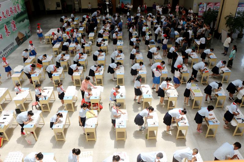 上午開(kāi)幕式后,參展書(shū)畫(huà)家赴涇縣人民政府一樓大廳參加了少兒書(shū)畫(huà)表演活動(dòng),現(xiàn)場(chǎng)指導(dǎo)少兒進(jìn)行書(shū)畫(huà)創(chuàng)作。