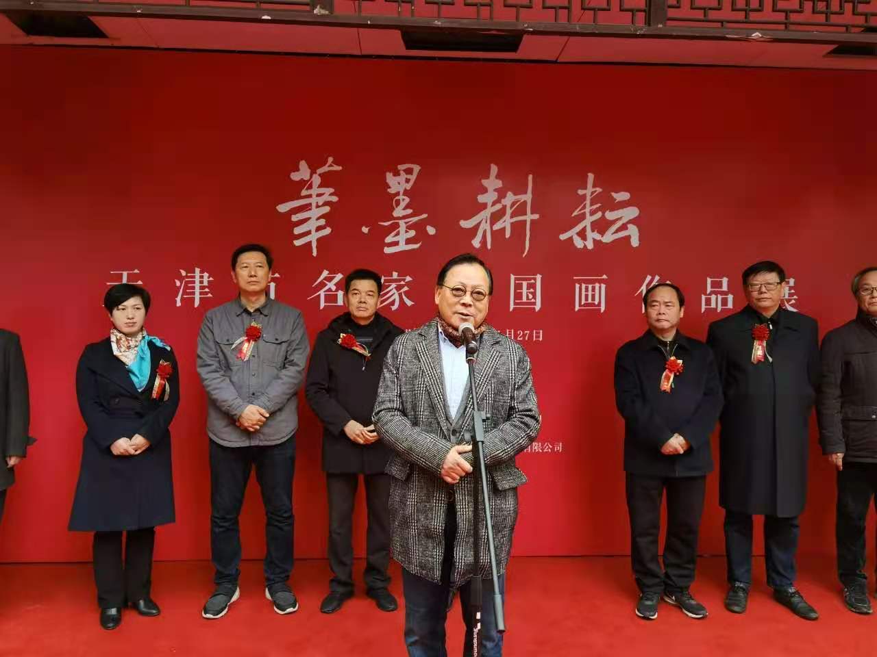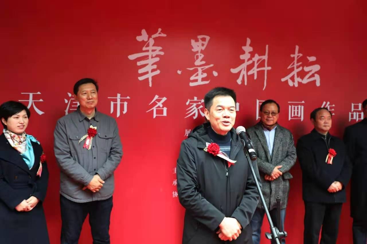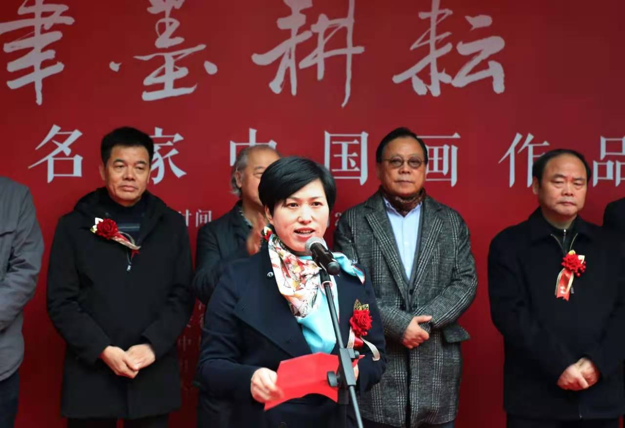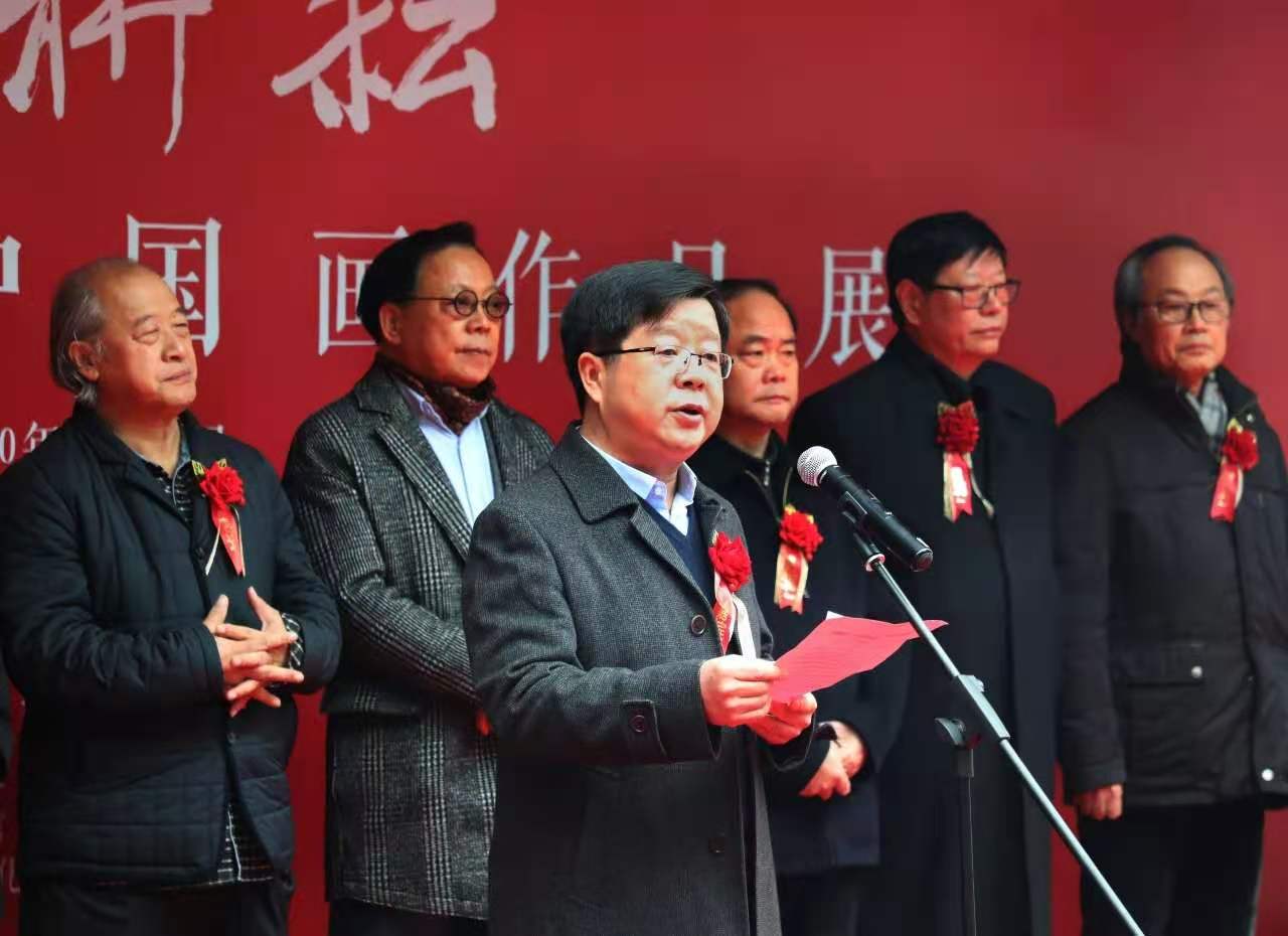中國美協(xié)副主席、天津市文聯(lián)副主席、天津市美協(xié)主席王書平作了熱情洋溢的講話。他指出,正值全國人民認(rèn)真學(xué)習(xí)貫徹十九屆五中全會(huì)精神之際,我們在這里舉辦“筆墨耕耘——天津市名家中國畫作品展”,要感謝各個(gè)方面對展覽給予的巨大支持,并向展覽的隆重開幕表示最熱烈的祝賀。他表示,走進(jìn)這片紅色的大地、文化的熱土,令人心潮澎湃、熱血沸騰。這里走出了許許多多的革命老前輩、革命先烈,也培育出了許許多多的著名藝術(shù)大師、書畫名家,來到這里才真正體會(huì)到為什么中國畫會(huì)產(chǎn)生這么大的魅力、凝聚力和感召力。中國畫的墨分五色和濃淡干濕,意境美、氣韻美,筆墨的堅(jiān)守與創(chuàng)新,都要感謝涇縣的宣紙文化,仍然堅(jiān)持著傳統(tǒng)制作技藝,為中國畫的創(chuàng)作提供了一個(gè)展示的平臺,對中國畫的發(fā)展作出了不可磨滅的貢獻(xiàn)。人民群眾不僅是中國畫的鑒賞者、欣賞者,更是評判者,所以我們來到這里,用作品向安徽、向宣城、向涇縣人民來匯報(bào)。今后安徽和天津兩地的美術(shù)家,要更多地進(jìn)行美術(shù)交流,真正走進(jìn)生活、走進(jìn)人民,做到對實(shí)用生活的身入、情入和心入。衷心祝愿兩地的美術(shù)家和美術(shù)工作者們,拿起手中的畫筆,帶著對祖國和對人民的摯愛,在涇縣的宣紙上,為新時(shí)代揮毫潑墨,為新時(shí)代描繪畫卷,以新的更精彩的作品向祖國匯報(bào),向人民匯報(bào)。