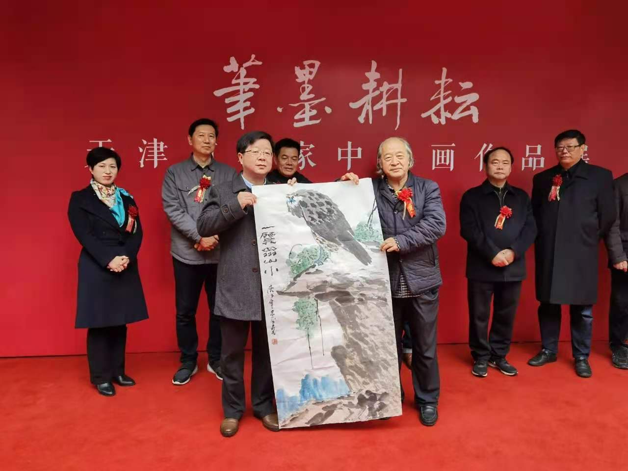 出席開幕式的天津名家每人向中國宣紙博物館捐贈(zèng)一幅作品,并由10位畫家合作了一幅八尺巨作捐贈(zèng)給中國宣紙博物館。中國美協(xié)副主席、天津市文聯(lián)副主席、天津市美協(xié)主席王書平代表參展畫家向中國宣紙博物館捐贈(zèng)作品,胡文軍董事長接受捐贈(zèng)。天津市美協(xié)主席團(tuán)成員、駐會(huì)秘書長張福有代表參展畫家捐贈(zèng)合作作品,朱大國總經(jīng)理接受捐贈(zèng)。