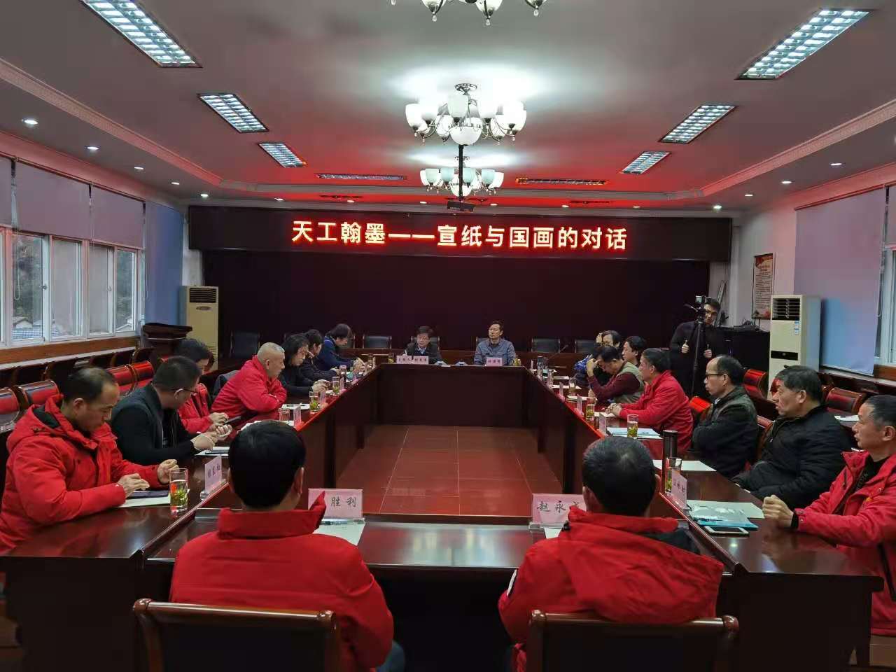 27日下午,為促進(jìn)宣紙與書畫藝術(shù)的深度融合,探討宣紙如何進(jìn)一步為藝術(shù)發(fā)展服務(wù),在中國宣紙股份有限公司會(huì)議室舉辦了“天工翰墨——宣紙與國畫的對話”研討會(huì),參展書畫家與中國宣紙股份有限公司經(jīng)營班子、大國工匠齊聚一堂,展開研討,踴躍發(fā)言,激情碰撞,取得豐碩成果。中國宣紙股份有限公司董事長胡文軍主持會(huì)議。