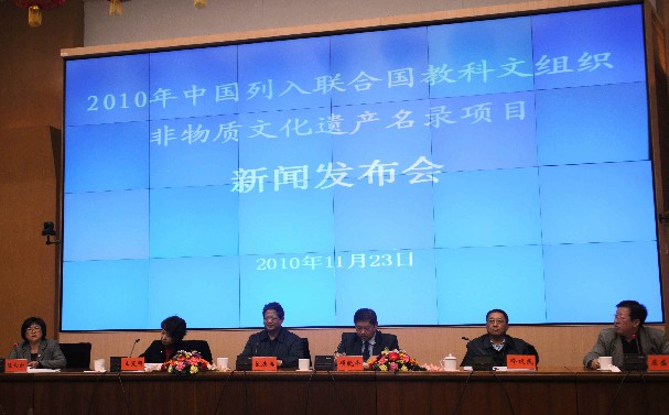 11月23日,文化部在京舉辦新聞發(fā)布會,通報2010年中國列入聯(lián)合國教科文組織非物質(zhì)文化遺產(chǎn)相關(guān)名錄項目情況。