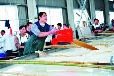 “超級宣紙”需要44名技藝精湛的撈紙師傅攜手抄制