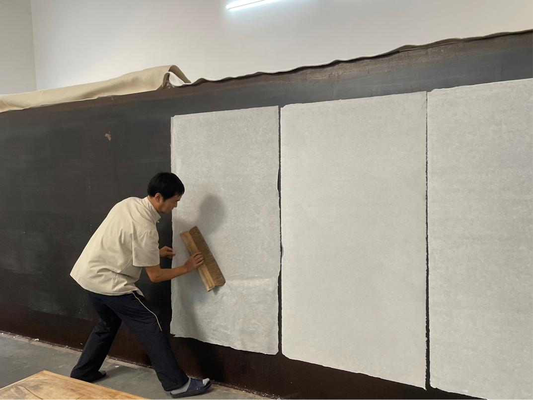 ??毛勝利正熟練進(jìn)行“曬紙”工序。(未來網(wǎng)記者凌萌 攝)