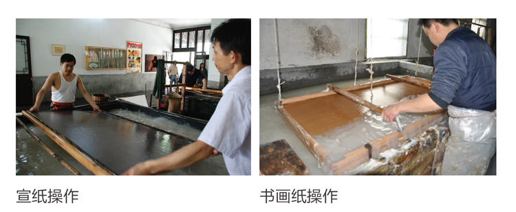 ??書畫紙大部分只用一種原料,在加工制作時(shí),對(duì)場地、土壤、水質(zhì)乃至工藝的要求不高,傳統(tǒng)制作只需十幾道,多則二十幾道工藝就能完成,一般都是由家庭式的小作坊來制作,對(duì)集體協(xié)作沒什么特別要求。也有很小一部分紙種是由集體操作,但對(duì)工藝精細(xì)程度要求不高。隨著大工業(yè)化程式加快,大部分書畫紙的漂白、蒸煮都使用了化工原料,加速了生產(chǎn)進(jìn)度,一般一個(gè)生產(chǎn)周期從傳統(tǒng)的將近一年時(shí)間縮短至3、5天。