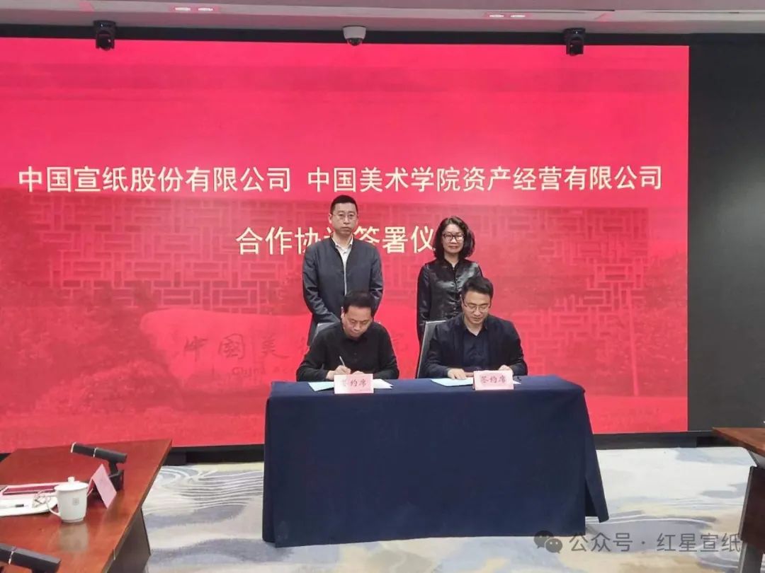圖丨雙方領(lǐng)導(dǎo)簽署合作協(xié)議 協(xié)同創(chuàng)新、共生發(fā)展。2024年5月8日,中國(guó)宣紙股份有限公司與中國(guó)美術(shù)學(xué)院資產(chǎn)經(jīng)營(yíng)公司在中國(guó)美術(shù)學(xué)院簽署合作協(xié)議。 中國(guó)宣紙股份有限公司黨委書(shū)記、董事長(zhǎng)趙胡鯤、黨委副書(shū)記、監(jiān)事會(huì)主席開(kāi)曉陸,中國(guó)美術(shù)學(xué)院黨委副書(shū)記傅巧玲、社會(huì)合作處處長(zhǎng)、資產(chǎn)經(jīng)營(yíng)有限公司董事長(zhǎng)、總經(jīng)理王益等領(lǐng)導(dǎo)出席簽約儀式。 本次合作,不僅是一次簡(jiǎn)單的校企合作,更是文化傳承和創(chuàng)新的探索。未來(lái),雙方將協(xié)同創(chuàng)新、共生發(fā)展,共同書(shū)寫(xiě)藝術(shù)教育和非遺傳承的輝煌篇章!