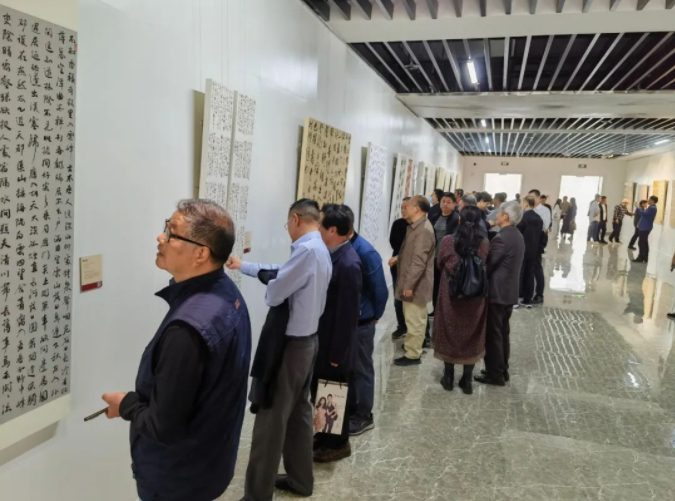 開幕式結(jié)束后,現(xiàn)場人員移步博物館展廳參觀作品展。