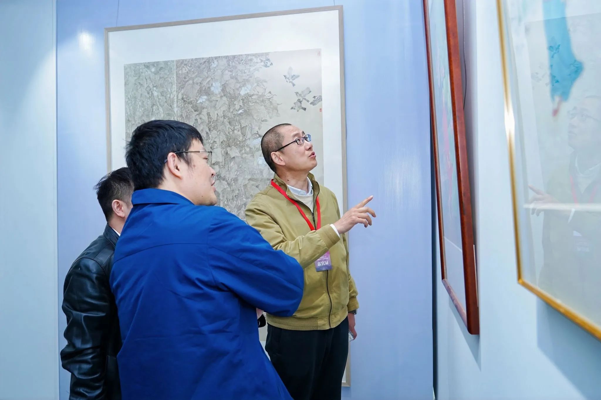 論壇結束后,全體與會人員在南湖校區(qū)翰藝術空間參觀了新材料中國畫小品展。