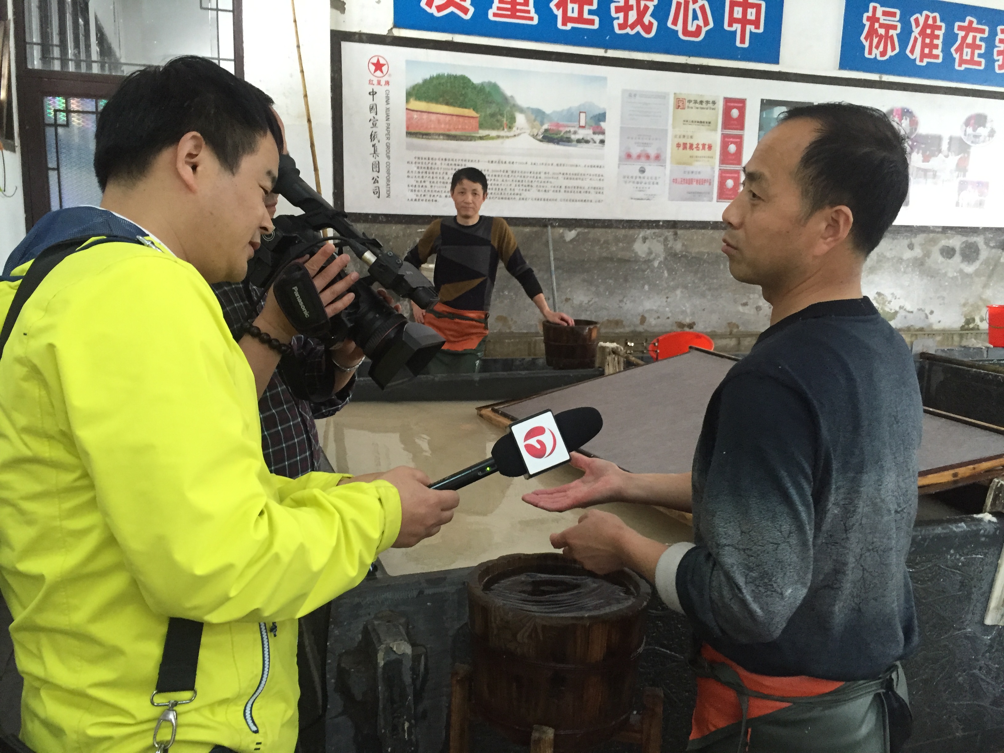 “剛開始學(xué)撈紙的時(shí)候我也覺得很辛苦,三天就不想做了,可是后來慢慢堅(jiān)持下來,隨著技藝的成熟,我對撈紙也熱愛起來了,這一堅(jiān)持就是三十年?!泵鎸τ浾叩牟稍L,周東紅靦腆地說到。撈紙工藝繁瑣單調(diào),需要每天不斷的重復(fù),正是由于這份對宣紙的獨(dú)特感情,周東紅才會三十年如一日堅(jiān)持下來了?!白钪匾氖且WC每張紙的質(zhì)量。”周東紅告訴記者,撈、曬、剪是宣紙制造的最后三道工序,其中撈紙是最重要的一項(xiàng)。憑借豐富的經(jīng)驗(yàn)和認(rèn)真的態(tài)度,周東紅至今保持產(chǎn)品成品100%的記錄。記者還采訪了中國宣紙有限公司副總經(jīng)理,他表示周東紅是公司的寶貴財(cái)富,也是公司全體員工的榜樣,公司為周東紅驕傲,同時(shí)他還表示,當(dāng)今的中國需要這樣一種“工匠精神”。