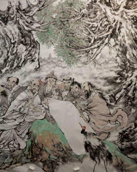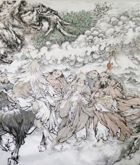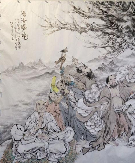 張偉覺圣老師以一個修行者的眼光和思維,以一個佛家信徒對佛學(xué)的精通和詮釋,對傳統(tǒng)的佛教題材的藝術(shù)元素加以歸納和總結(jié),予以改造和提升。由此,張老師寫意羅漢畫除了是一種藝術(shù)形式的表達(dá)外,更是一種精神靈地的守護(hù)。他的目標(biāo)是延續(xù)佛教題材中的羅漢畫法脈,讓隱沒在傳統(tǒng)里未能發(fā)揚光大的佛羅漢畫像在他的手中得以薪火相傳,擔(dān)當(dāng)著佛教文化傳承的使命,守護(hù)著盛世中國強勢文化中的非主流話語權(quán),讓其在人類社會精神體系中發(fā)揮著重要的作用?!?/p>