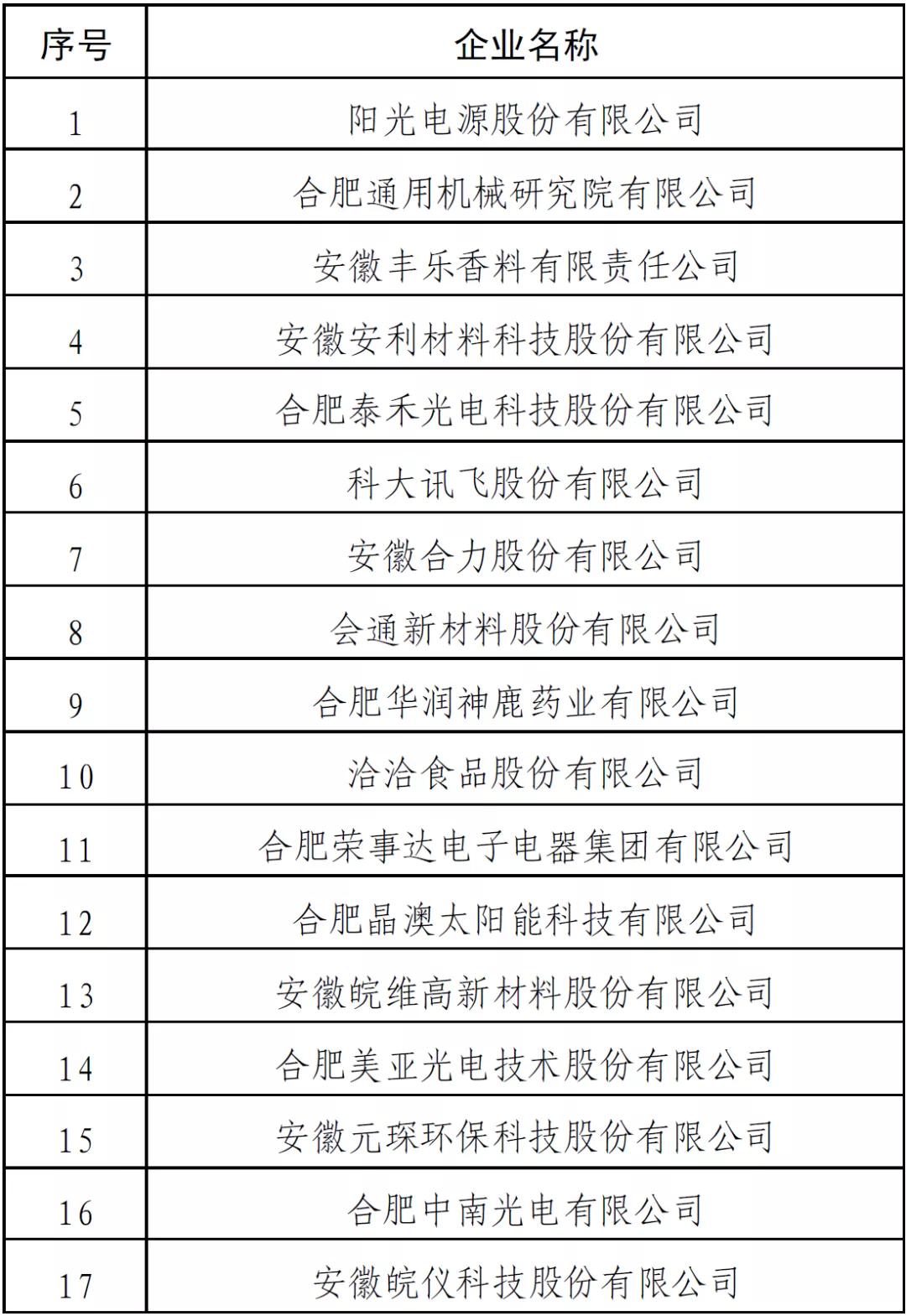 首批安徽省制造業(yè)高端品牌培育企業(yè)名單