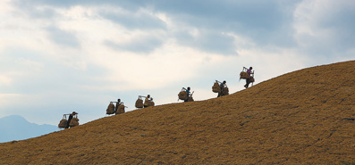 7月17日清晨,安徽省宣城市涇縣,工人在運送宣紙制作原料并進行攤曬。據(jù)了解,古法宣紙制作技藝由108道工序組成,攤曬是其中重要的步驟之一。水稻秸稈作為宣紙的重要原材料,經(jīng)過多道工序后,用于宣紙的制作。(7月20日人民日報《攤曬稻草造紙忙》汪宜勝攝)