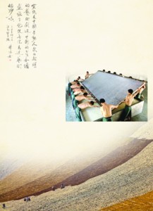 用紙簾手工撈紙,一般兩人合作,蕩勻揚起,全靠手感細膩功夫。