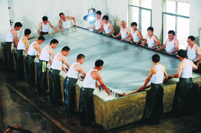 作為國內***的手工紙,“千禧宣”上一次抄制在2000年,其規(guī)格為216.2cm×629.1cm,適宜創(chuàng)作大幅作品或題材厚重作品。當年,“千禧宣”作為***的手工紙成功創(chuàng)造基尼斯世界記錄。據(jù)該廠生產負責人介紹,一張“千禧宣”從撈制到成品,前后需要50名員工協(xié)力完成。每張出槽的“千禧宣”重達4斤1兩,本次抄制的“千禧宣”總量不超過4000張。本報通訊員 文明 張萍 本報記者 吳文兵 攝影報道