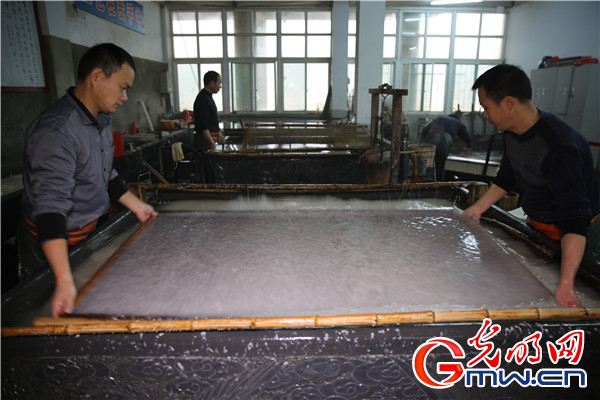 撈紙工人正在進(jìn)行撈紙工作